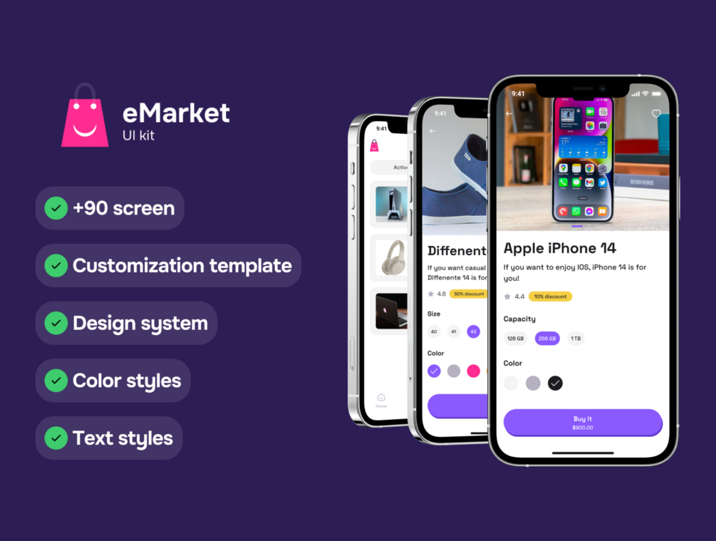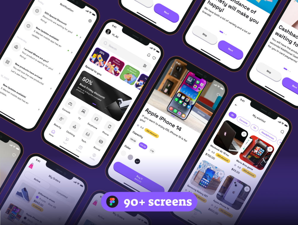 Welcome to eMarket! This guide is here to assist you in utilizing our Figma template for creating a feature-rich and visually stunning e-commerce mobile application. Let's dive into the steps to craft an exceptional online shopping experience: